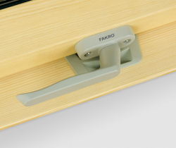 Популярна конструкція дерев'яних дахових вікон Fakro з петлями посередині висоти вікна і ручкою відкривання, типу "Стандарт", яка розташована в нижній частині рами і має два положення для микровентиляциы. Легкий спосіб миття зовнішнього скла або користування маркізою завдяки блокування, який блокує зворотну раму у позиції 180°. Деревина, просочена антисептиком під тиском у вакуумній камері і покрита акриловими лаком. Однокамерний енергозберігаючий склопакет U2 (R = 0.91 м2оС / Вт) з загартованим зовнішнім склом, заповнені аргоном. Система topSafe збільшує стійкість мансардних вікон до несанкціонованого вторгнення ззовні. Широкий асортимент аксесуарів, можливість установки електроуправління. Діапазон монтажу 15-90.